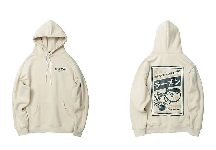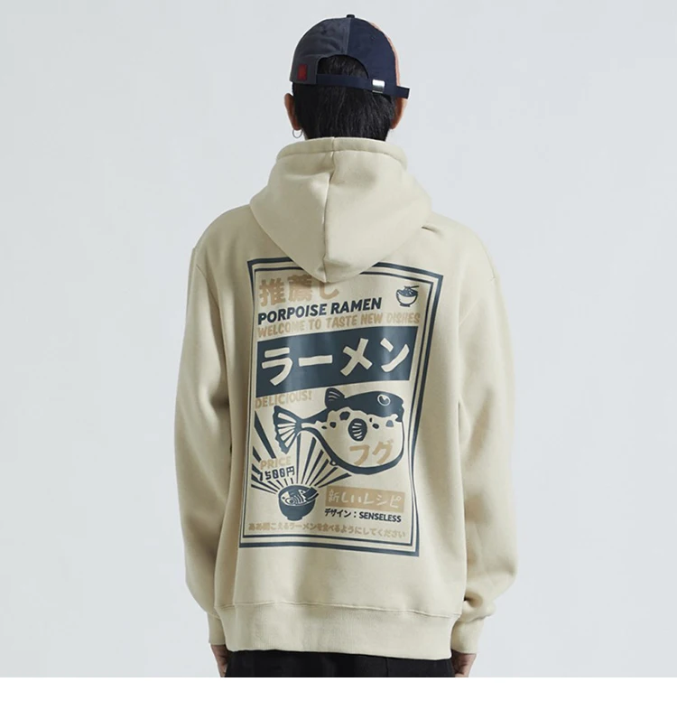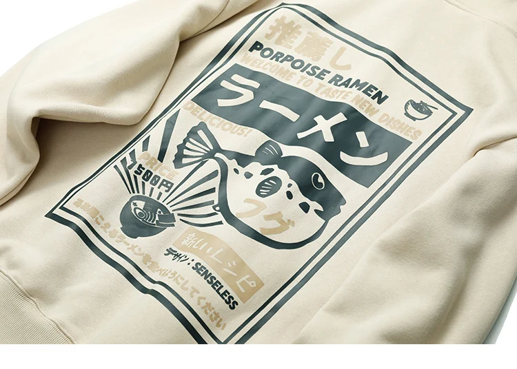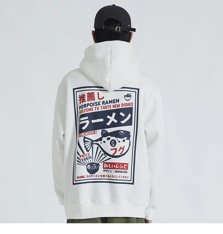 2019 Japanese Harajuku Hoodie Sweatshirt Puffer Fish Print Mens Streetwear Hip Hop Hoodie Pullover Cotton New Hooded Sweatshirt