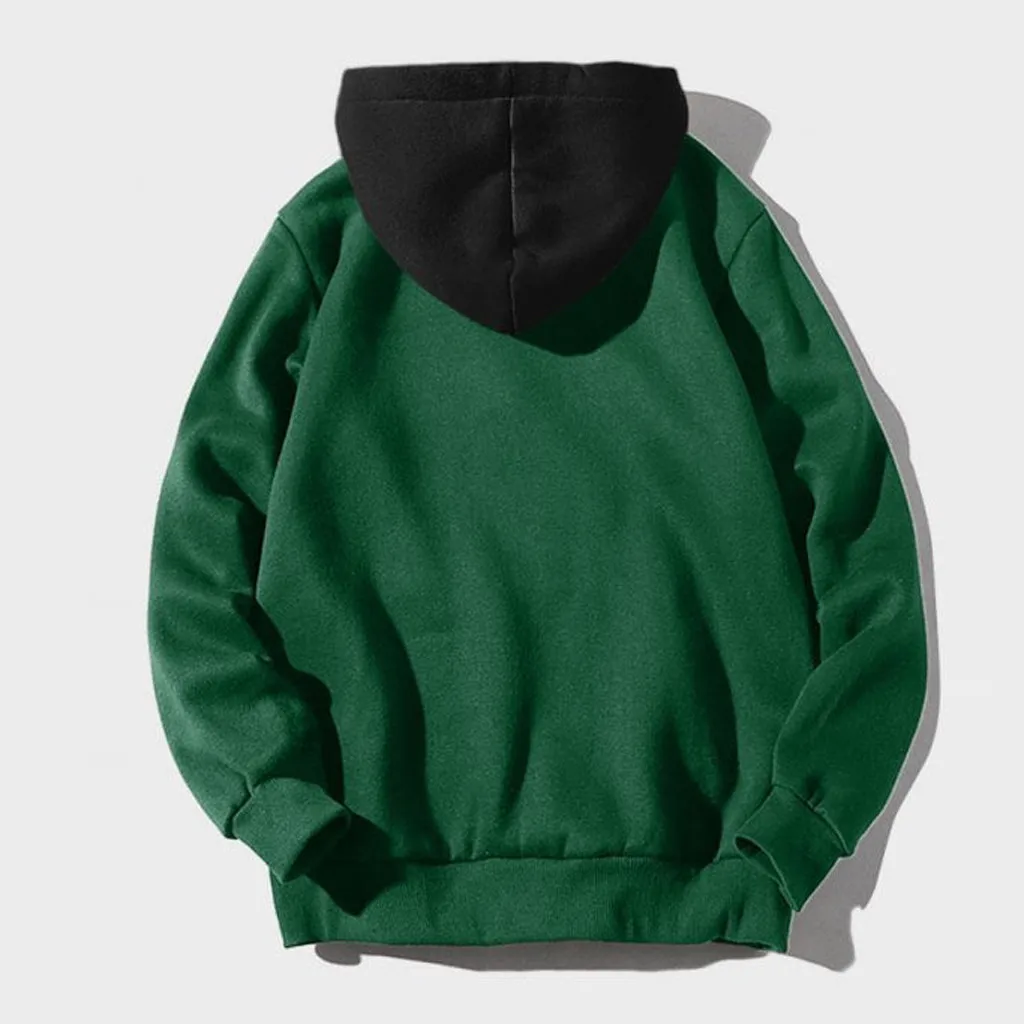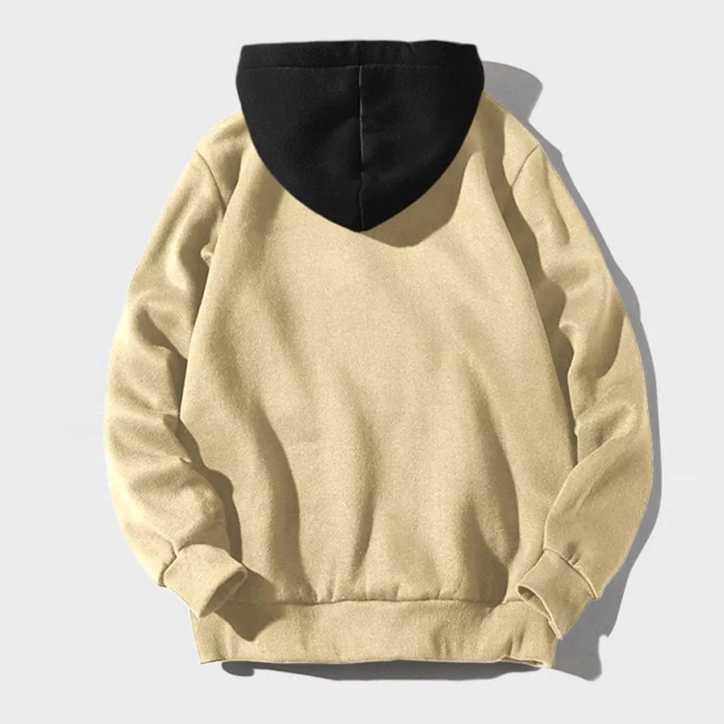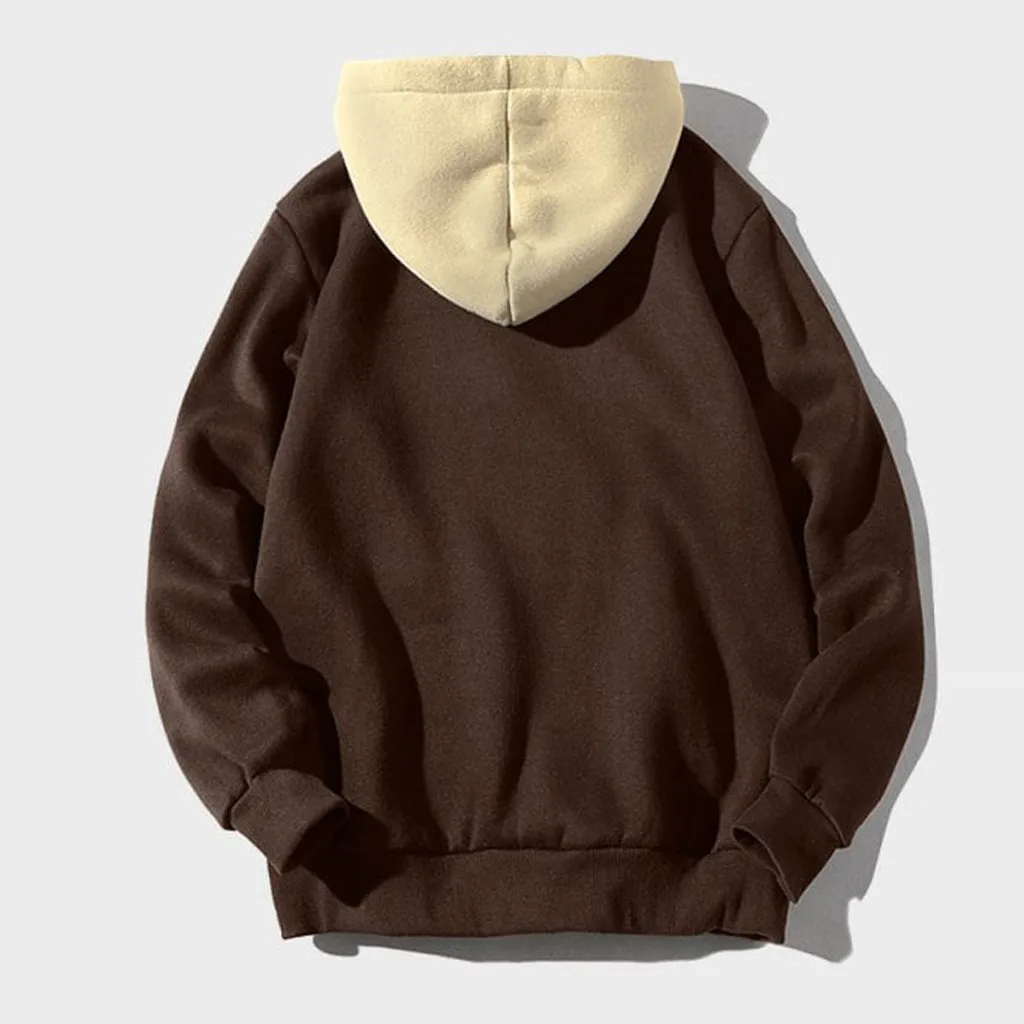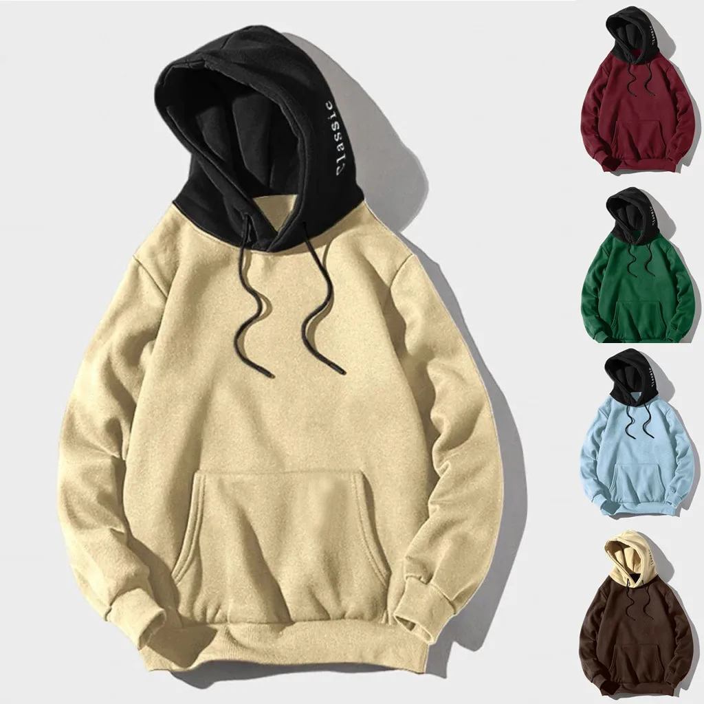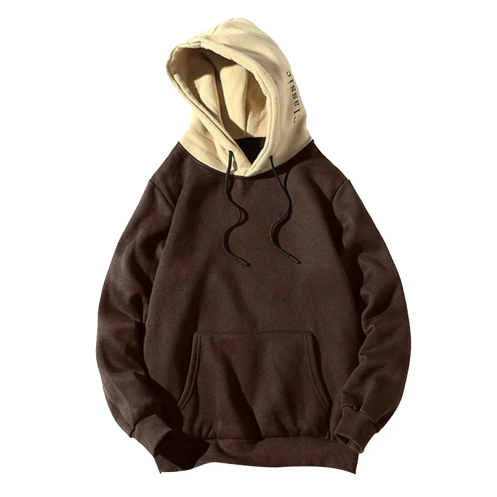 Men Casual Patchwork Hooded Top Blouse Sweatshirt With Pockets Coat