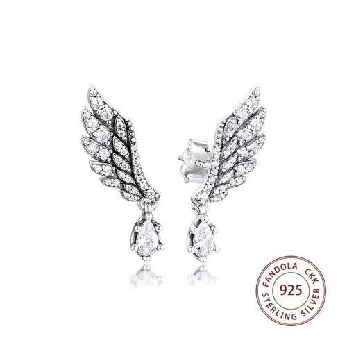 100% 925 Sterling Silver Earring Dangling Angel Wing Stud Earrings for Women Fashion Jewelry pendientes brincos Free Shipping