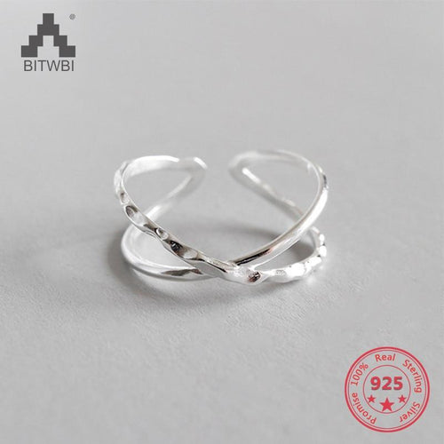 100% 925 Sterling Silver Geometric Simple Personality X-Shaped Dark Pattern Manual Opening Ring