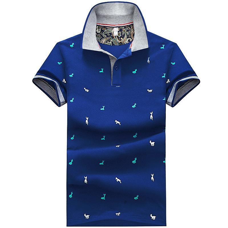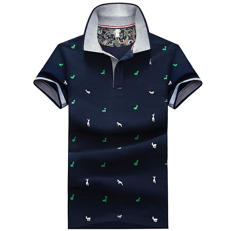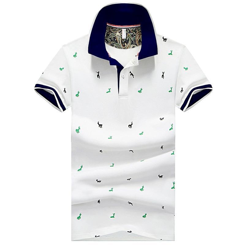 2019 Men Summer Deer Print Polo Shirt Short Sleeve Slim Fit Polos Fashion Streetwear Tops Men Shirts Sports Casual Golf Shirts