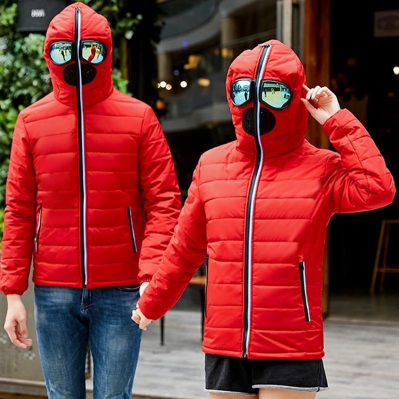 2019 North Winter Jackets Men Glasses Hooded Face Windproof Space Suit Hip Hop Outdoor Riding Sport Warm Bomber Jacket Parkas