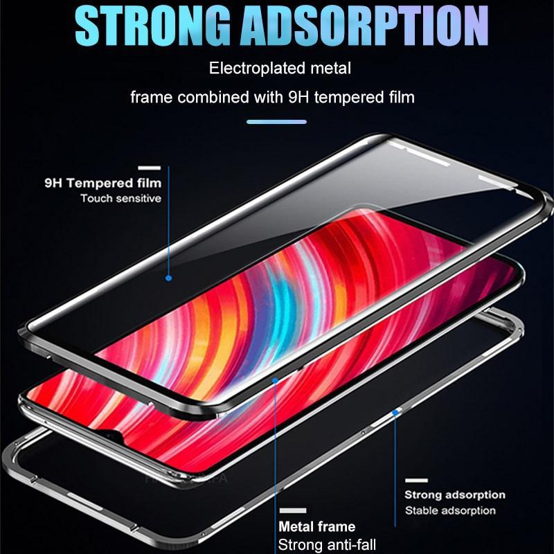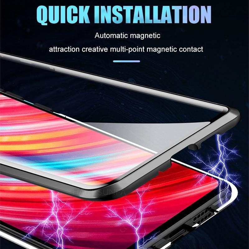 Double Sides Glass (Front +Back) Metal Magnetic Case For iphone Description: 【Magnetic Adsorption Design & Double Sides Clear Tempered Glass】 2019 New magnetic adsorption phone case adopt multipoint and strong magnetic field adsorption technology with built-in magnet surrounds the glass case. 【360° Full Body Protection & Diamond Cutling Edge】 The phone case's 360° full body metal frame protection and hard tempered glass design raised bezels lift screen and camera off flat surfaces, toughed nanoglass back, anti-scratch & anti-dirty, protect your phone from scratching,shock & smudge, premium materials offer unrivaled protection and enhanced durability. Diamond cutling edge make the case cool and magnificent which make your phone look different . 【Non-Blocking Signal & Support Wireless Charging】 Precise cutouts for speaker, camera, flash and other functional ports,which allow access to all ports and functions easily without removing the case.can support wireless charging and not block cell phone signal without removing case,it is not easy to absorb heat when charging due to the back tempered glass.