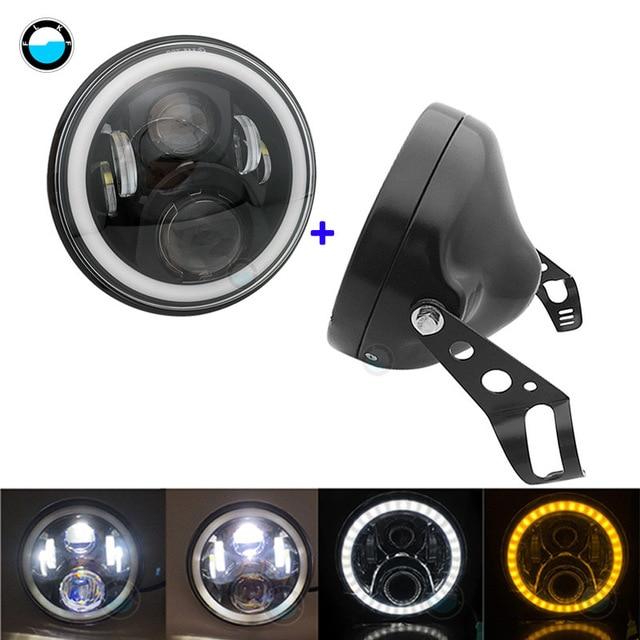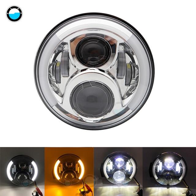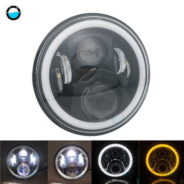 7 Inch 60W DOT SAE E9 Motorcycle Headlamp with angle eye Led Headlight 7inch housing bucket trim ring.