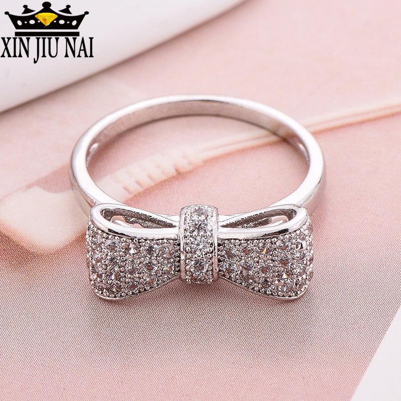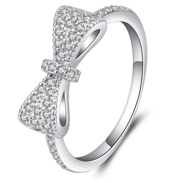 925 Anillos Silver Sparkling Bow Knot Stackable Ring Micro Pave CZ For Women Valentine's Day Gift Jewelry Wholesale Lots Bulk