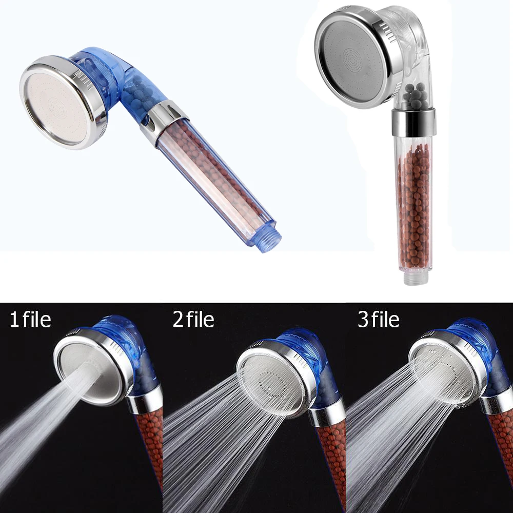 Adjustable 3 Mode Shower Bath Head High Pressure Stone Stream Handheld Shower Head With Negative Ion Activated Ceramic Balls