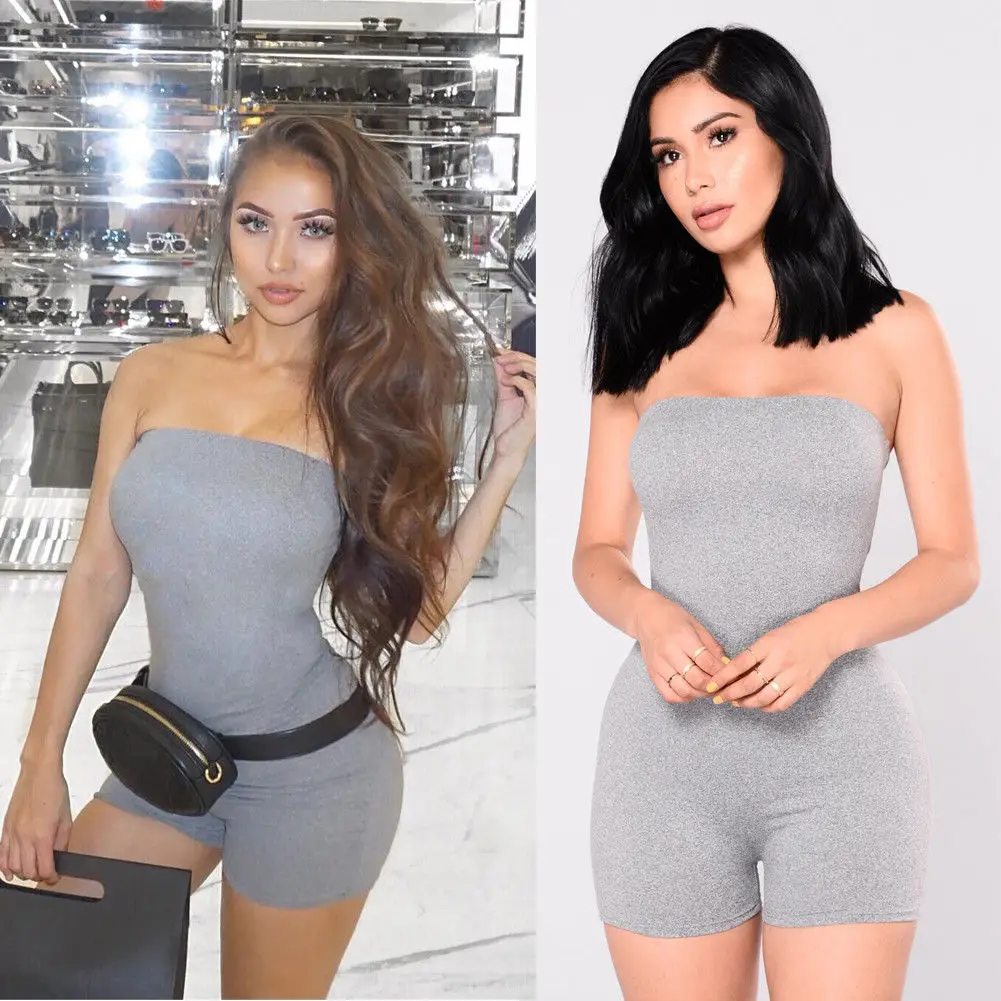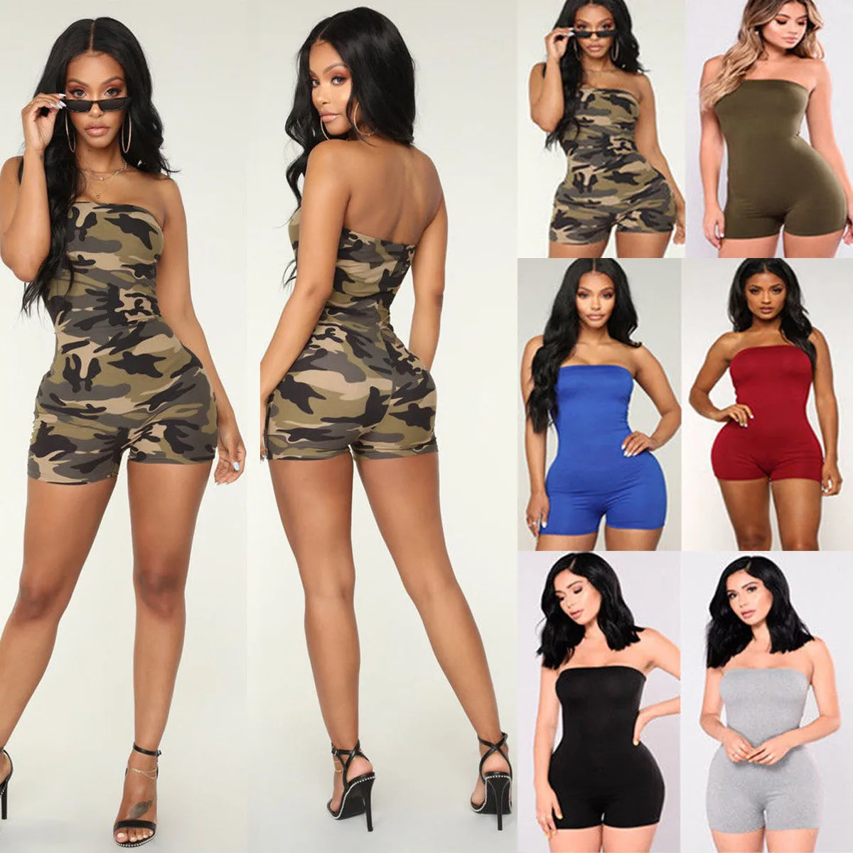 Basic Classic Style Fashion Women Playsuit Plain Color Mini Jumpsuit Off Shoulder Strapless Cotton Playsuit Beach Short Trouser
