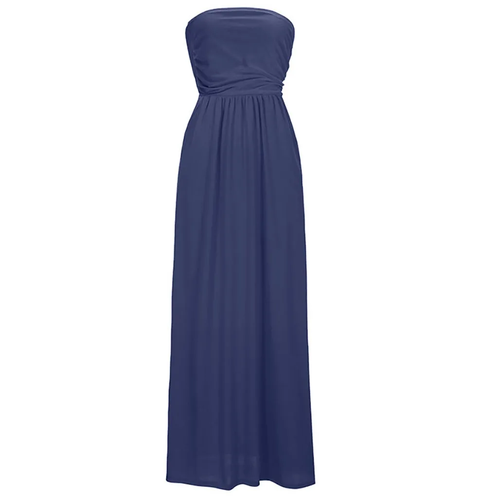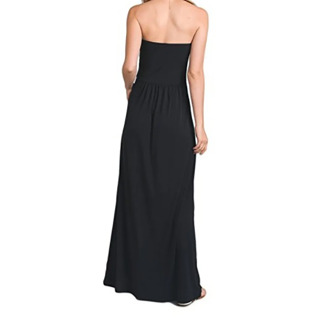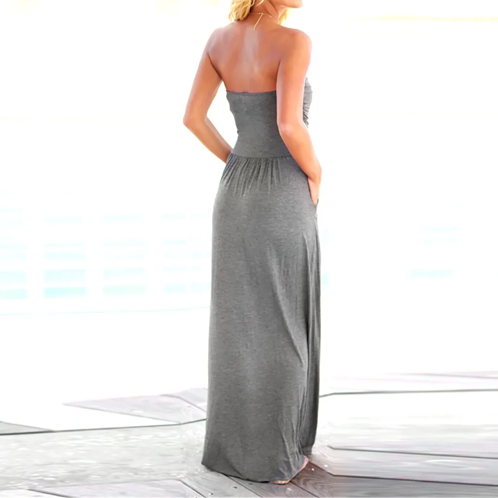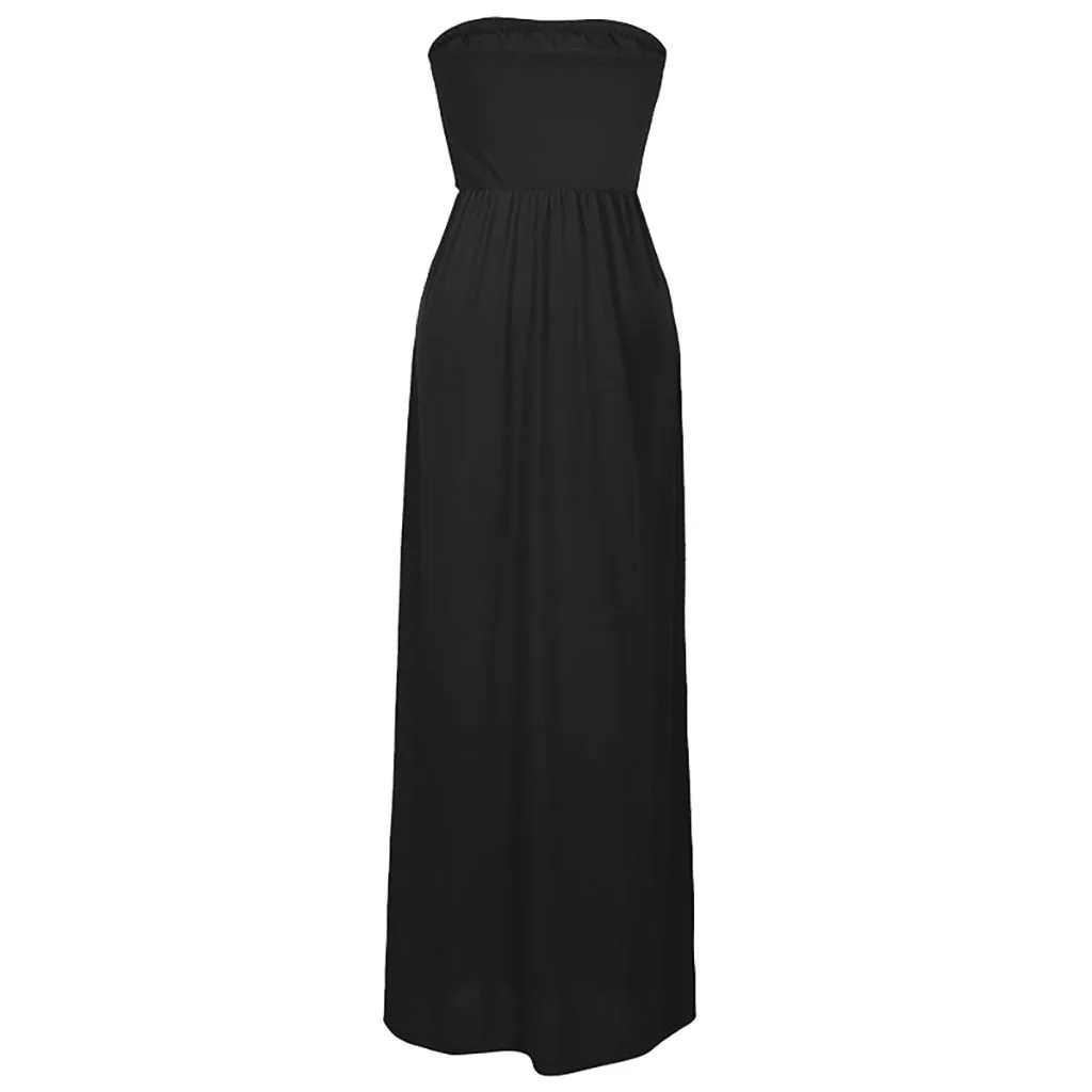 Boho style Maxi Dress Women Sexy Strapless off shoulder Solid Color Summer High Waist Long Pockets Casual Beach dress Vestidos