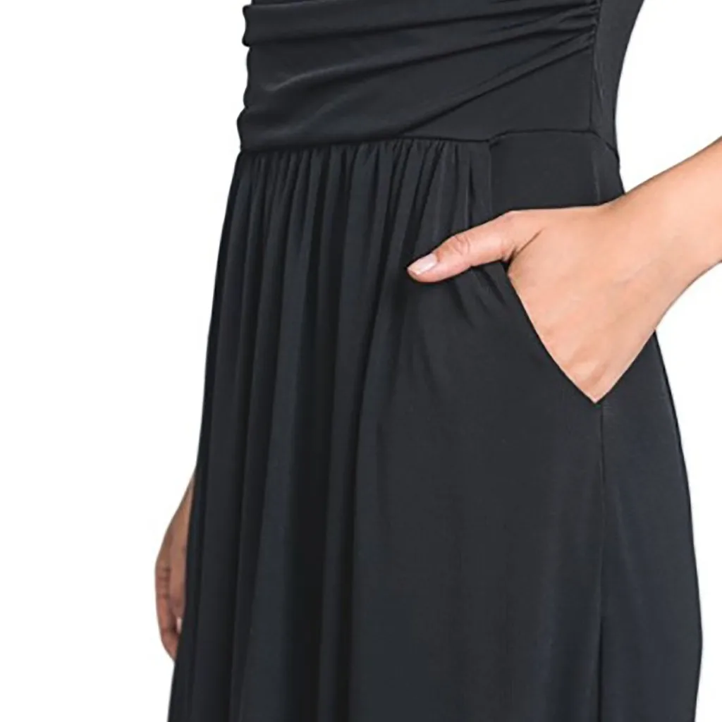 Women's Slash neck Sleeveless Maxi Dresses Casual Long Dresse With Pocket